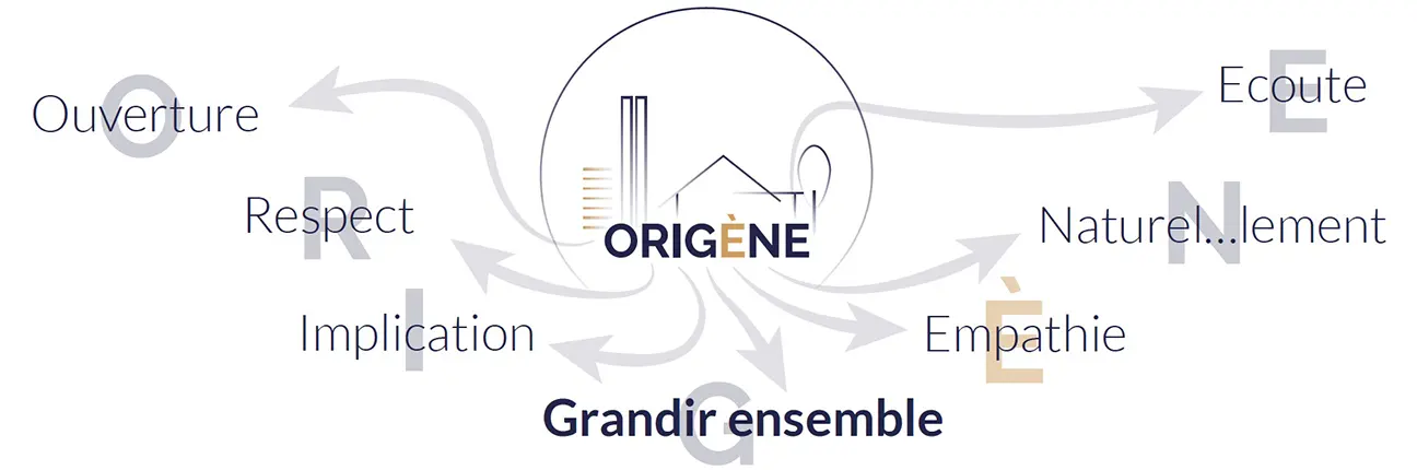 ORIGÈNE, c'est surtout une structure à taille humaine, qui s'adapte aux attentes et aux besoins de chacun de ses clients et qui se construit chaque jour autour de 7 valeurs essentielles :
